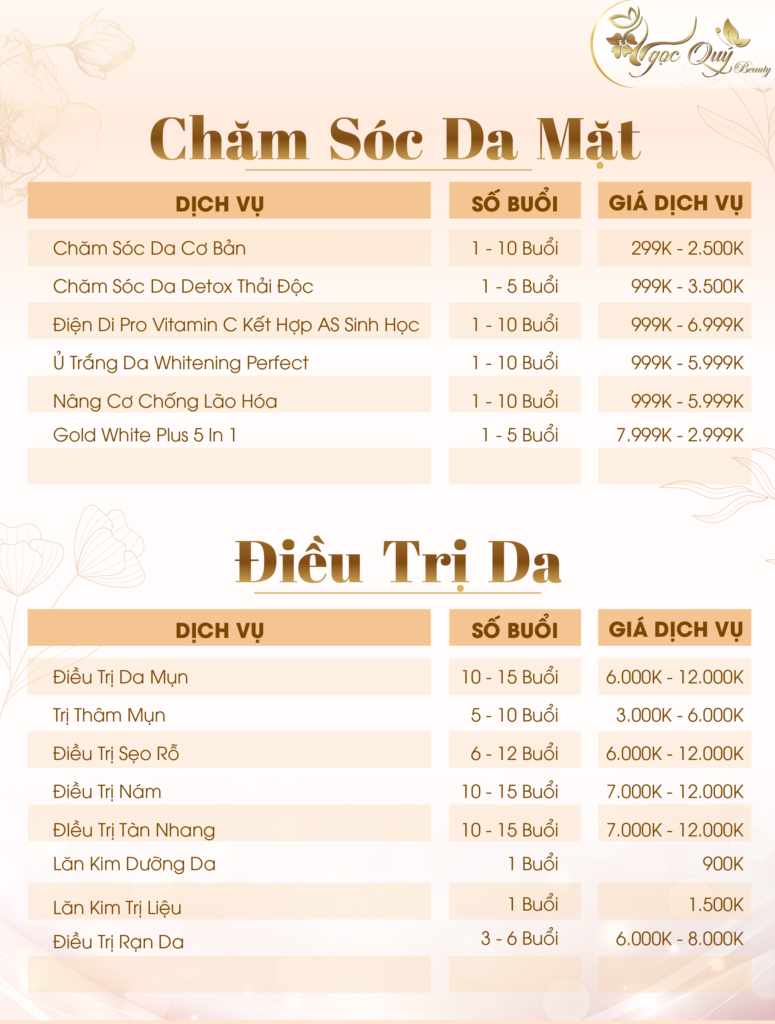Mời quý khách hàng tham khảo bảng giá các dịch vụ tại NoYa như sau: